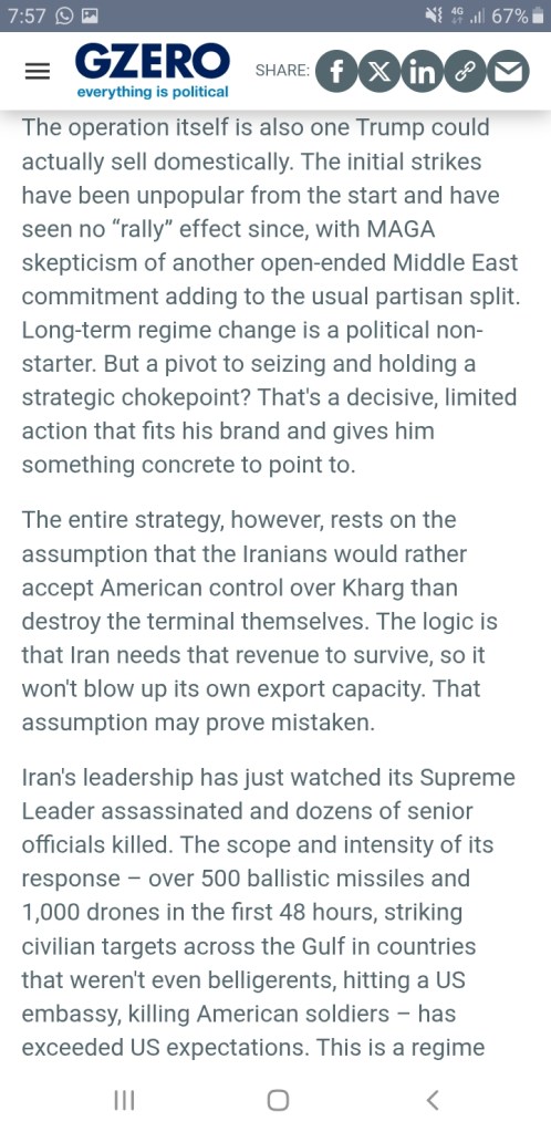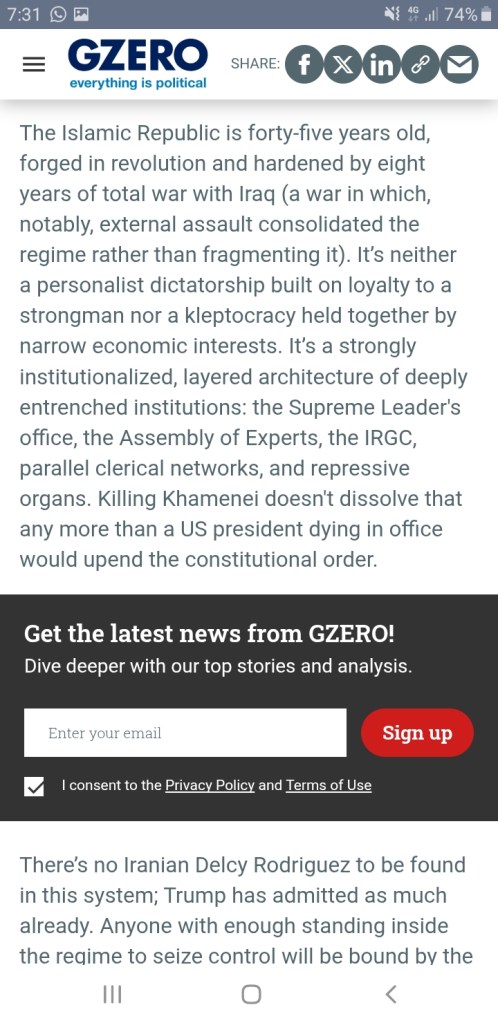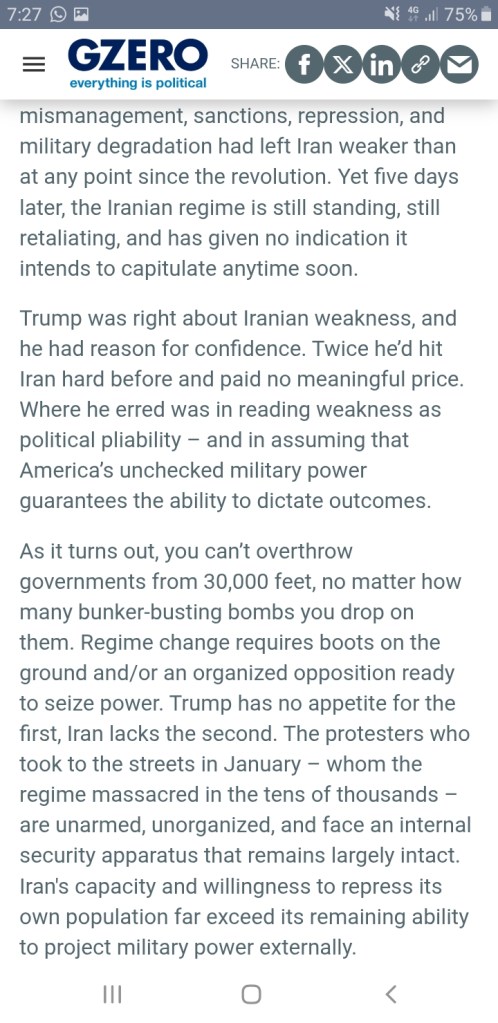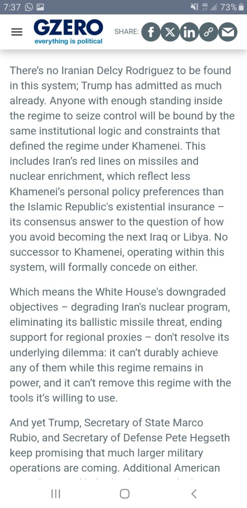 La transformación radical de la Prensa en instrumento de dominio no deja lugar a dudas: no hay forma de atar cabos con ella; si hoy te parece haber entendido algo, mañana te desengañas. Donde hace un par de lustros leías y obtenías luz, hoy sólo encuentras trampas. De poner el acento, como es normal, en los asuntos nacionales, hemos pasado en poco tiempo a ver sólo páginas farragosas de guerras lejanas a las que no hay por donde coger. Y en la otra cara de la moneda, cuando te acontece toparte con un articulito muy claro, es señal inequívoca de que también eso es mentira, la mentira que el pérfido sistema quiere que asumas como verdad. Esto se ve claro en la última entrega de ‘sapos y culebras para tragar’: la de la guerra de Irán… ¿Quién se puede creer que la errática política del líder de los EEUU sea algo más que un cuento, que tenga alguna base real? ¿Qué sentido pueden tener las veleidades de ese personaje? Por sus frutos los conoceréis, y ese esperpento político produce un efecto claro: el desánimo de la población, el convencimiento de que nada puede hacer ella por influir en su propio futuro, por más que lo intente. Los sobresaltos, la falta de lógica, la disrupción continua, y la merma de poder adquisitivo que a esas alteraciones se atribuye, causan indefensión aprendida en la población, parálisis, anonadamiento.
