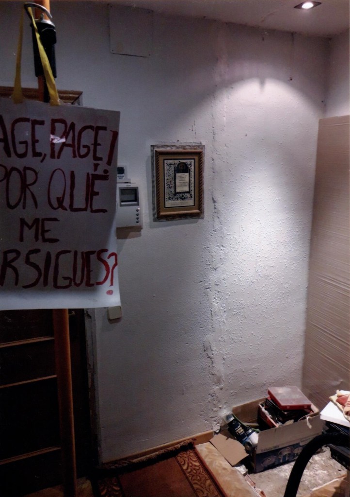 De esa manera tan espléndida escapé de la trampa del cazador. Pero el duro cerco no se rompió del todo; y con falsos testimonios de los servicios sociales, y de otros, siguieron adelante nuestros perseguidores con su atropello. Finalmente, viendo en peligro la vida de mi familia, busqué otro lugar para residir, y nos mudamos. Dos años después, un juez injusto nos impuso un alejamiento de nuestras viviendas de cinco años, y pagos por valor de treinta mil euros. Ese castigo nos supuso tener que vender aquellas propiedades, asunto en el que estamos metidos desde hace ya dos años. Malvendimos el piso hace un mes, con muchos malestares, problemas y disgustos.