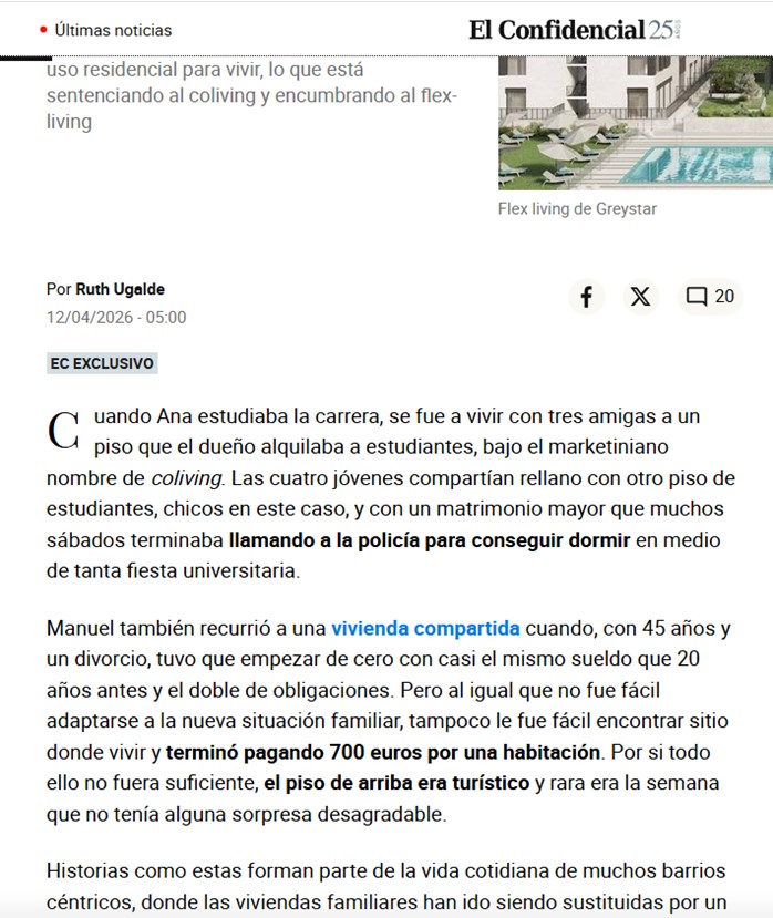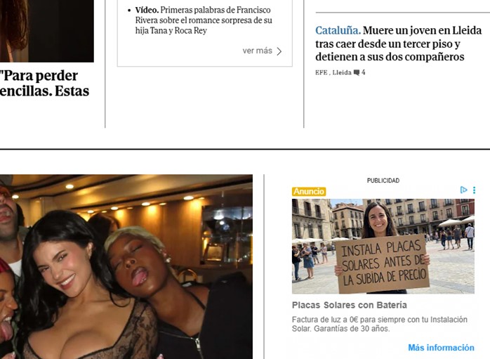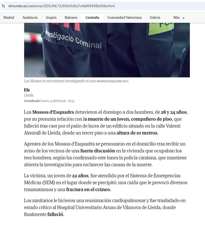 En línea con el anterior, este artículo, cuyo titular pasa desapercibido en la foto lujuriosa de más arriba, vuelve a incidir en la mentira del alojamiento de estudiantes en pisos como problema. Este formato truculento obedece a la preocupación de la Agenda por aislar a los hijos de padres honrados: estos últimos, solícitos del bien de sus hijos universitarios, en su vistazo a «El Mundo», fijarían la mirada con angustia en la pequeña noticia de la derecha y lamentarían la grande de la izquierda. Y fácilmente caerían en la trampa del miedo, que nubla el entendimiento.
